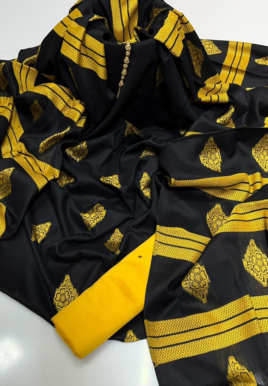 Stuff Susi Banarsi barosha allover Shirt, lining Contrass Trouser Along With Banarsi Bindi Jaal Dupatta double badar .